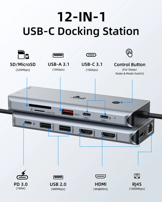 LIONWEI 12-in-1 USB C Docking Station with 3 HDMI 4K@60Hz