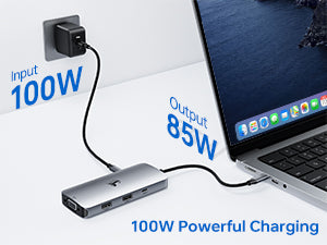 ● Charge your laptop with ease using the 100W USB-C PD charging port.