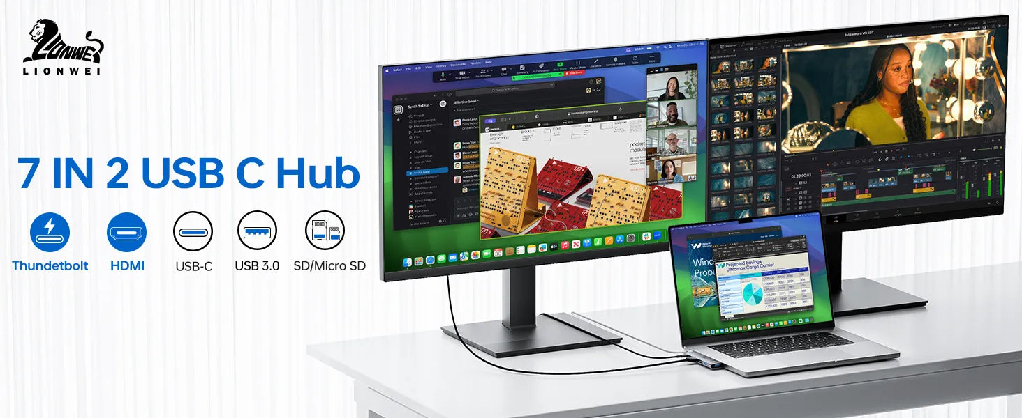 7-in-2 Newly USB C Hub for Macbook Pro/ Macbook M3 M2 M1 Series