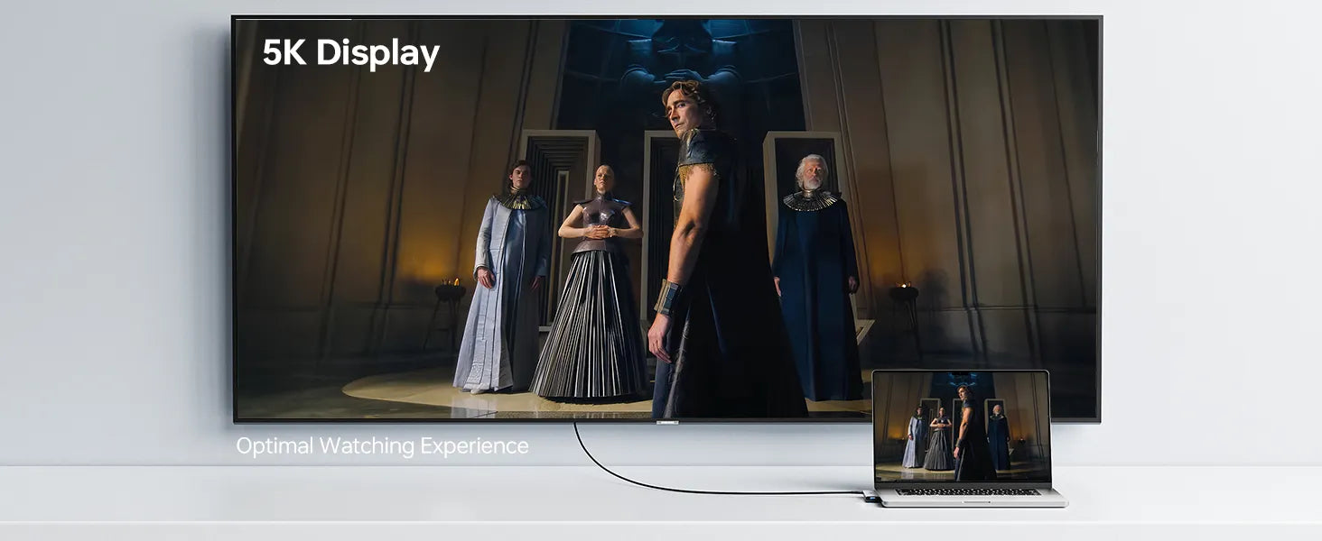 Thunderbolt Port: Compaitble with Thunderbolt 3 & 4, Up to 6K@60Hz(Depends on your MacBook), Power delivery up to 100W, Data transfer 40Gbp/s