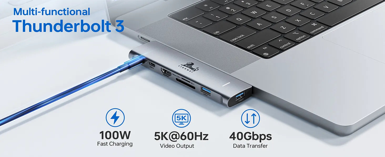 This Macbook Adapter equipped with one 4K 30HZ HDMI port, 2 USB 3.0 , one Thunderbolt 3 port, one 100W USB C PD fast charging port,and SD TF Card Readers.