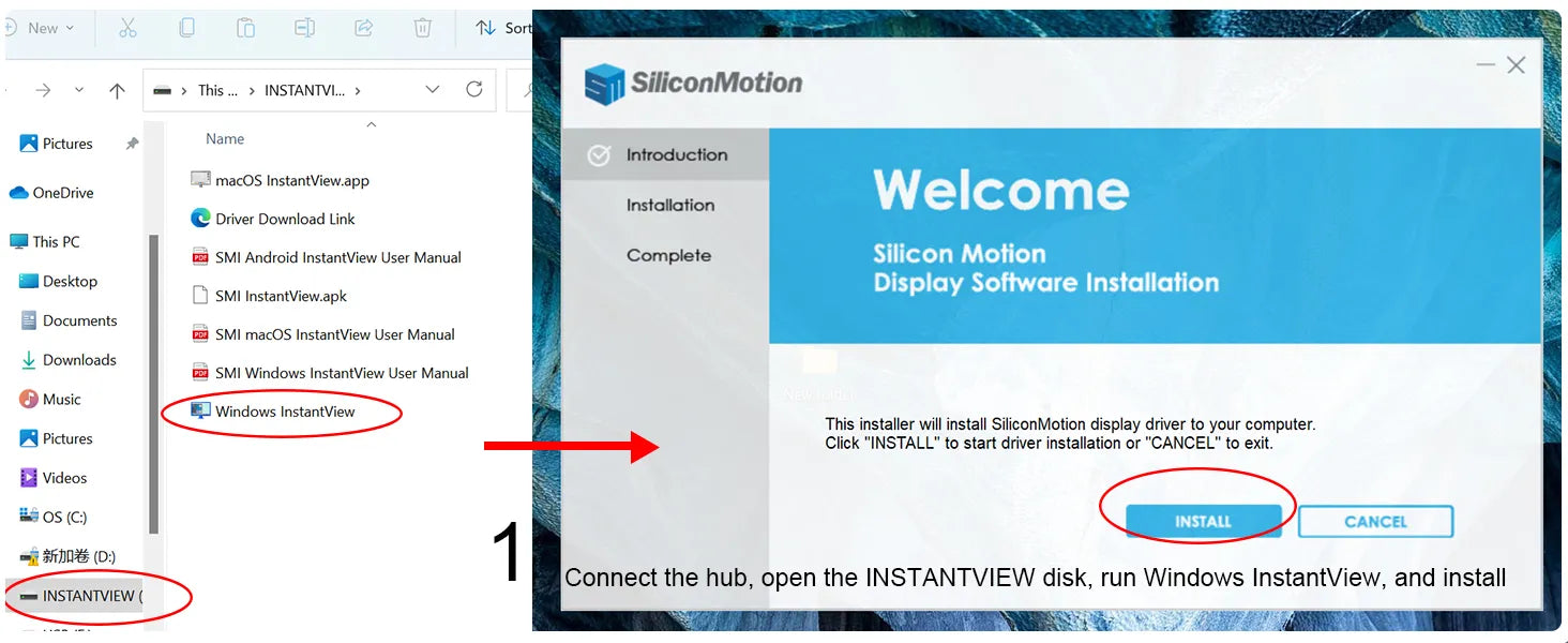Please Note: You can connect your device via USB 3.0 or USB C, but the usb hub need to be installed the driver on your laptop to work.